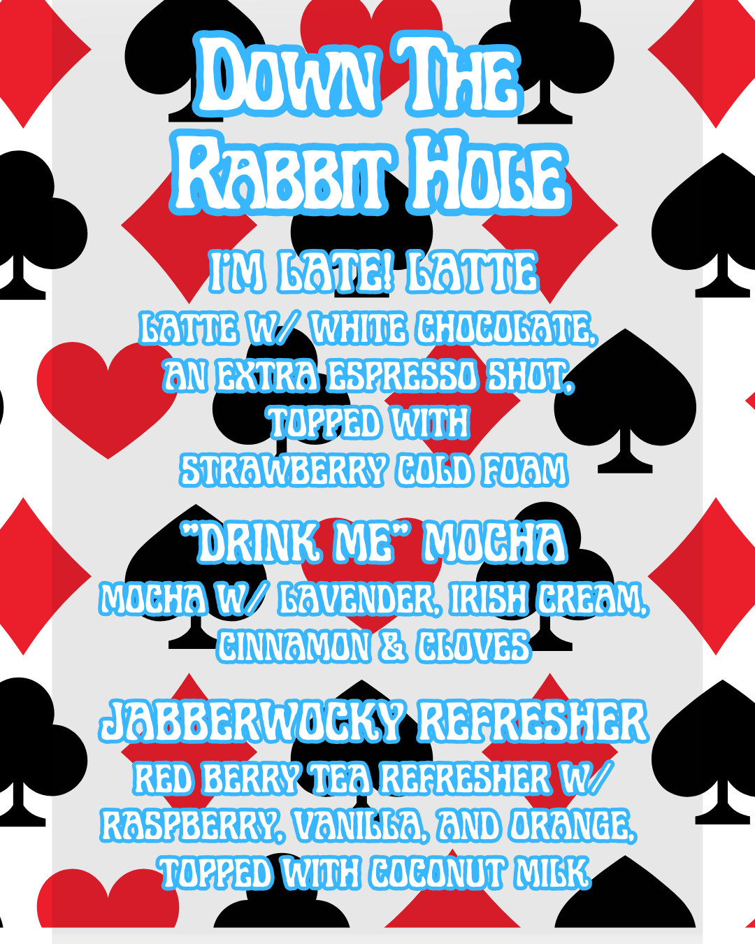 I’m late! I’m late! For the launch of our new menu: Down the Rabbit Hole!🐇